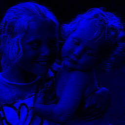 If we analyse this image in two ways -- into its components Red, Green and Blue channels and, at the same time, we use 8 bits per pixel to describe each of these three color channels in 256 tones -- this is what we get: