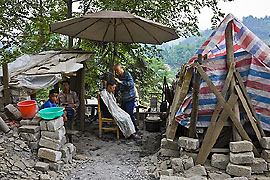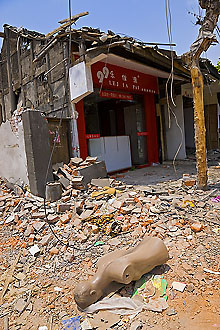 In the village of Luoshui, in the outskirts of Shifang, we saw a whole shopping street which had been destroyed. In the shell of one building was a small shrine to the shopkeeper’s father. Aged ninety, he had lived through all the twentieth century changes in China, only to be killed in the 'quake.