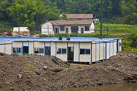 This was controlled by the military, as many local people were camping in the grounds. At first there was some suspicion but this soon melted away when it became apparent that our mission was one of friendship and goodwill. As we left, I shook hands with each of the stern faced soldiers who had helped unload the van. Their faces broke into broad grins and they seemed young enough still to be at the school. Next day we ventured further into the mountains, to Xinxing and Tongji, where the devastation in the narrow valleys was, if anything, even more concentrated. Yet despite this there were already signs of things returning to normal.