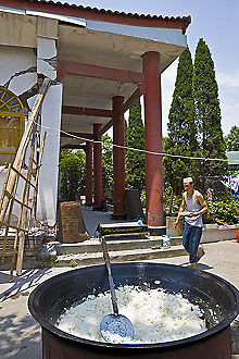 The mosque in Luoshui had been left in a perilous state by the tremors but forty families were being looked after in the grounds. The eighty year old Imam was injured. A woman showed me a picture of her eleven year old son who had been killed when the local school collapsed. As I looked at the sadness in her eyes I struggled to fight back my own tears. Yet despite the state they were in, they were pleased to see us and even invited us to lunch, cooked in the open in huge woks.