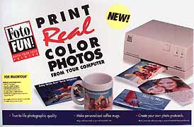 Buy a FotoFUN for the family and you will end up hijacking it for professional use. So why not just buy one as your own inexpensive foot in the door of digital imaging? You could also buy a cheap digital camera, such as the Apple QuickTake 100. The quality of the FotoFUN exceeds that of the QuickTake 100 camera, though 4 x 6 inch prints from it are quite respectable. You can now buy a QuickTake 100 for £195, so it is possible to have both digital camera and printer for under £500. That has to be a bargain. FotoFUN is one of the sexiest digital imaging products I have seen. So what are you waiting for?