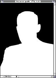 Now hold down Command and tap the 4 key. The black and white outline you see is your new 'Alpha' channel, very useful for special effects. You can work on this channel - or the Red (Command+1), the Green (Command+2) or the Blue (Command+3) - independently. For example you could blur the alpha channel to blend your selection gradually - like cutting out with feathered scissors.